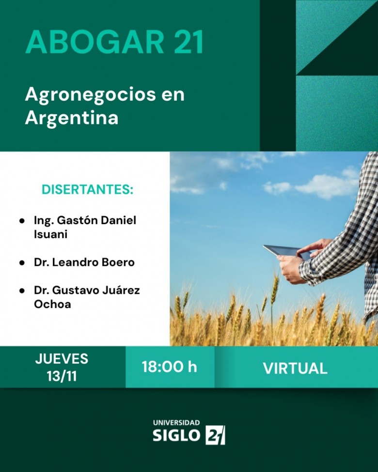 ¿Te interesa ampliar tus conocimientos? Desde Abogar 21, te invitamos a participar de un encuentro pensado especialmente para vos: “Agronegocios en Argentina ¿Cuáles son los riesgos jurídicos que enfrentan este tipo de negocios y actos jurídicos en la modernidad?”