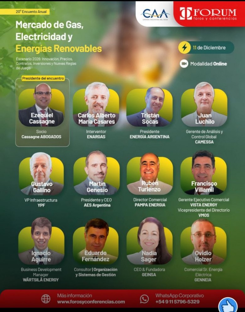 En un contexto de profundas transformaciones estructurales en el sector energético argentino, el próximo 11 de diciembre se realizará el 20° Encuentro Anual del Mercado de Gas, Electricidad y Energías Renovables, un evento clave para comprender los desafíos y oportunidades que marcarán el rumbo hacia 2026.