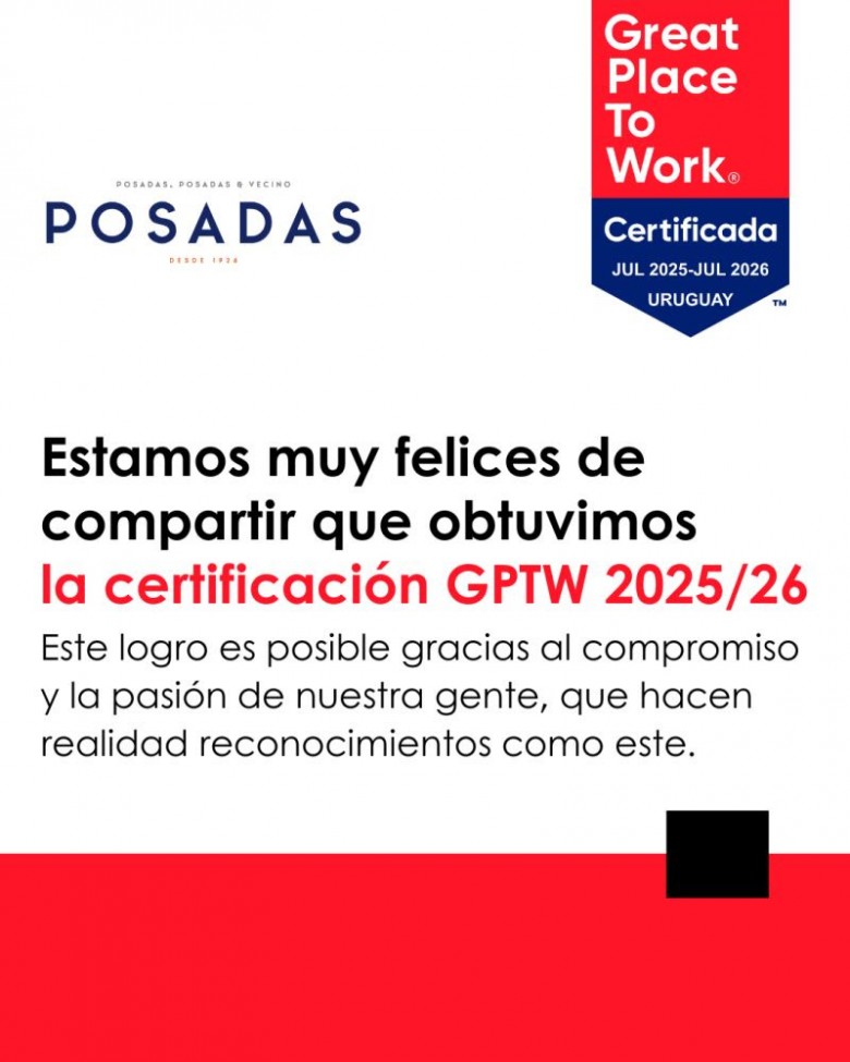 El estudio Posadas recibió la certificación de Great Place to Work® en Uruguay, un reconocimiento que destaca a las organizaciones que construyen entornos laborales de confianza, colaboración y desarrollo.