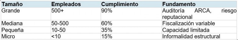 Tabla 5: Cumplimiento proyectado por tamaño de empresa