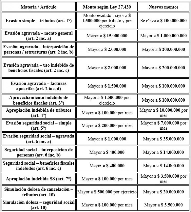 A continuación, incluimos un cuadro comparativo entre los montos establecidos por la Ley 27.430 y los que regirán a partir de la publicación de la Ley 27.799: